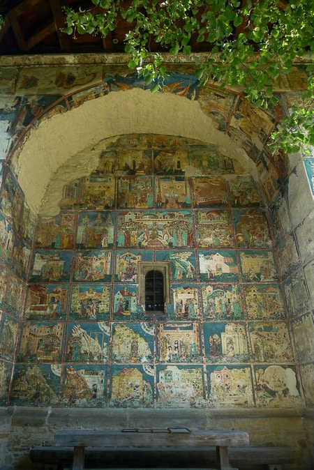 Built in 1530 on the premises of an older church, the monastery of Humor has particularities that differentiate it from Romania’s other painted churches. It is smaller than some of the other monasteries, and doesn’t have a steeple.