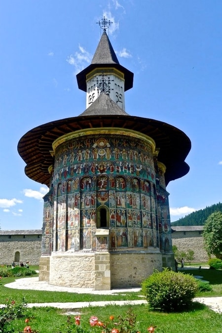 Suceavita’s exterior paintings are exquisite. Its rich and monumental murals are the best-conserved and the most impressive of all the painted churches in Bucovina.
