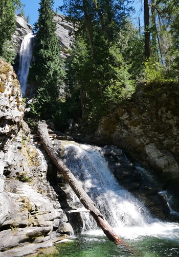 The 312 ft cascade lies near the tiny town of Stehekin, on the northern shores of Lake Chelan. Along with the Stehekin Bakery and a one-room schoolhouse, it is a popular place to visit on a day trips across the lake.